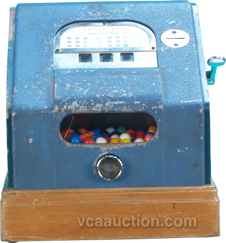 Coin-Op Countertop Mills "Fruit King" 3-Reel Gumball Trade Stimulator, all original w/ keys
