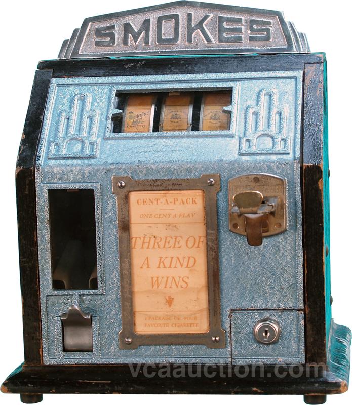 Coin-Op Countertop National "Smokes" Cigarette 3-Reel Gumball Trade Stimulator, very rare, all original w/ keys