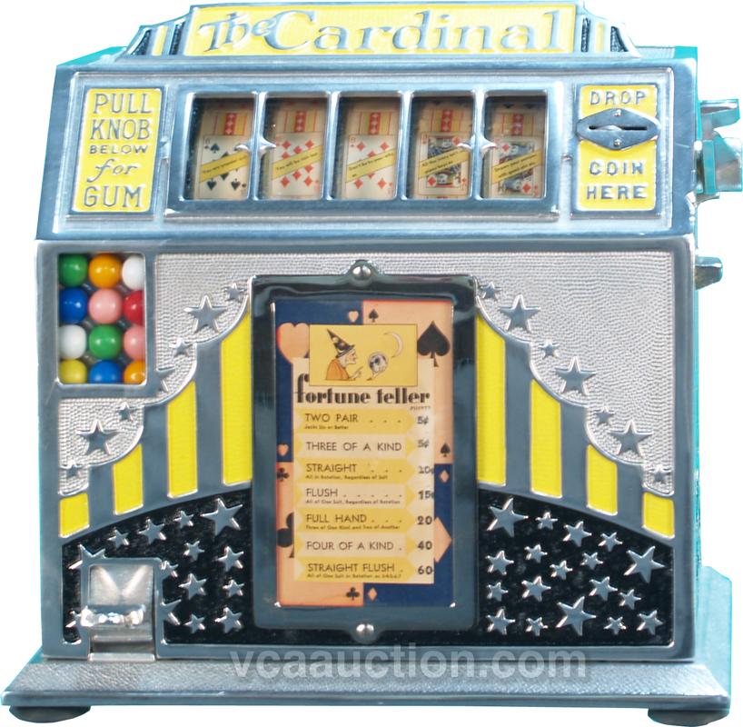 Coin-Op Countertop Pace "The Cardinal" 5-Reel Poker Hand Gumball Trade Stimulator, restored w/ keys