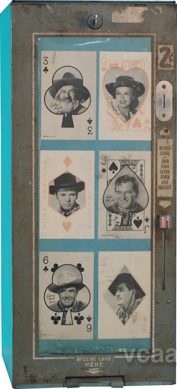 Coin-Op "Cowboy Stars" Countertop Card Vending Machine w/ Additional Cards & Original Key made by Exhibit Supply Co. rare and hard to find.