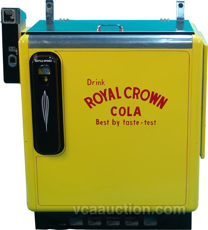 Coin-Op Drink Royal Crown Cola Embossed Floor Model Cooler by Ideal Dispenser Co. Columbus, OHIO w/ bottle opener & keys, in great condition