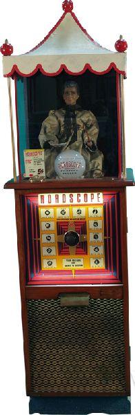 Coin-Op Floor Model Genco Gypsy Grandma Horoscope Fortune Teller Arcade Machine c1946. Comes w/ original horoscope scrolls, N.O.S. fortune cards (500), machine has been restored to original condition w/ keys.