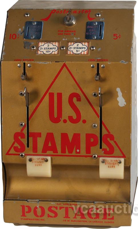 Coin-Op Metal Wall Mount "Postmaster" US Postage Stamp Vending Machine by Vogue Enterprises c1960's w/ keys