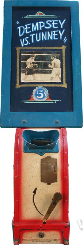 Coin-Op Mutoscope w/ Marquee "Dempsey Vs. Tunney" MFG By International Mutoscope Reel Co. Inc. New York, USA w/ Keys