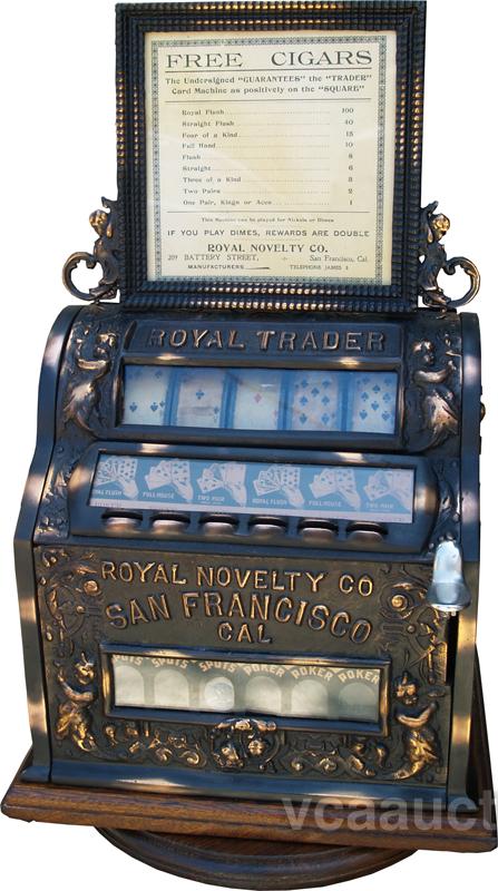 Coin-Op Royal Trader Cast-Iron Card Drop Trade Stimulator MFG By Royal Novelty Co. San Francisco, CAL. w/ Keys