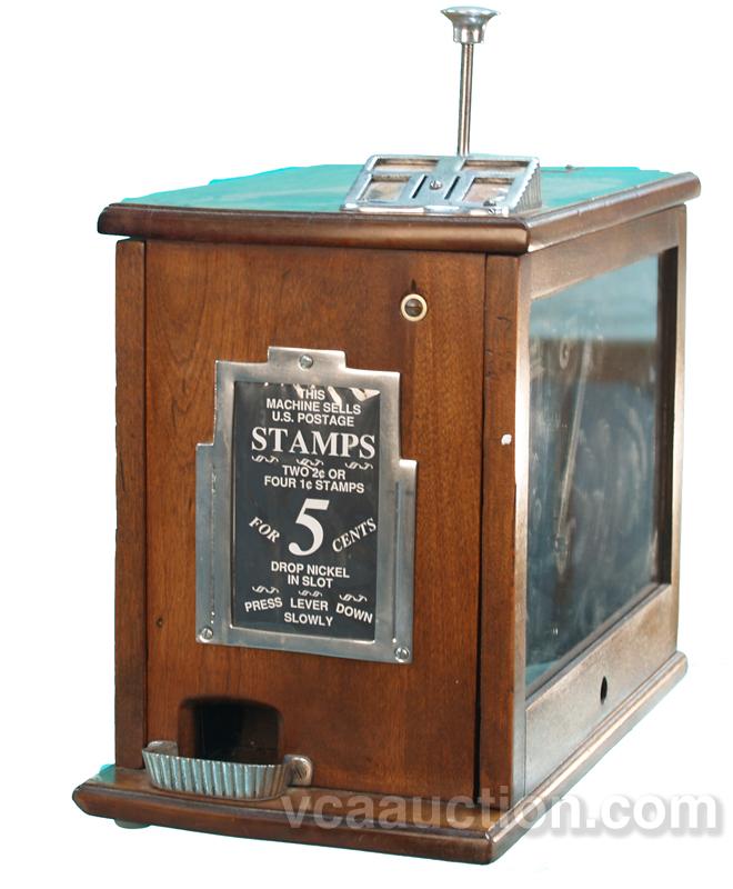 Coin-Op Wooden Duplex US Postage Stamp Vending Machine Made By Midland Supply Co. Davenport, IOWA., Model K, Very Rare, In Good Condition