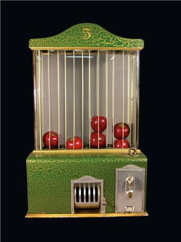 Coin Operated Apple Vendor by the Apple Vendor Co., New Way Mfg. Co., Seattle, WA. Very good original condition with minor paint loss on shelf, with key. 20 X 32 X 12 inches.