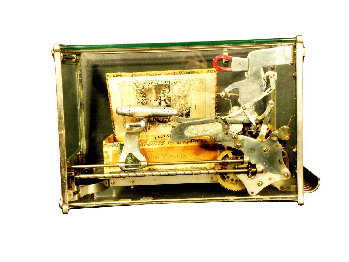 Coin Operated Five Cent Cigar Vendor by the Pope Automatic Mdse. Co., Corn Exchange Bldg., Chicago, 1909, The only Transparent Cigar Vendor we have ever seen. Excellent Working Condition. 9 X 10 1/4 X 16 1/2 inches.