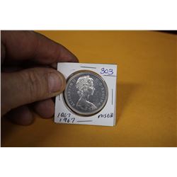 1867 - 1967 Cdn. Silver Dollar Coin - .800 Silver - MS63