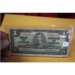 2 - 1937 Bank of Canada One Dollar Bills - Worn Borders