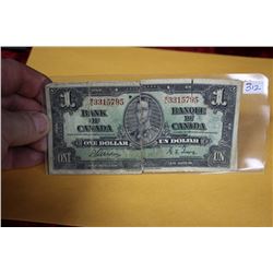 2 - 1937 Bank of Canada One Dollar Bills - Worn Borders - 1 is rough