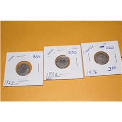 1929; 1932; 1936 Cdn. Silver Ten Cent Coins