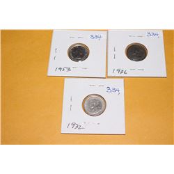1932; 1936; 1953 Cdn. Silver Ten Cent Coins