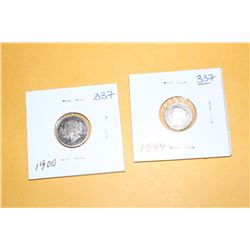 1899 Queen Victoria Sm. Nickel; 1900 Cdn. Dime - Silver