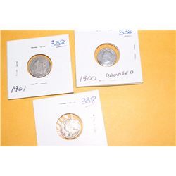 1900; 1901 (Holed); 1901 Cdn. Small Silver Five Cent Coins - .925 Silver