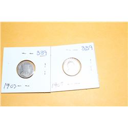 1903; 1907 Cdn. Small Five Cent Coins - .925 Silver