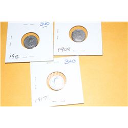1909; 1913; 1917 Cdn. Small Five Cent Coins - .925 Silver