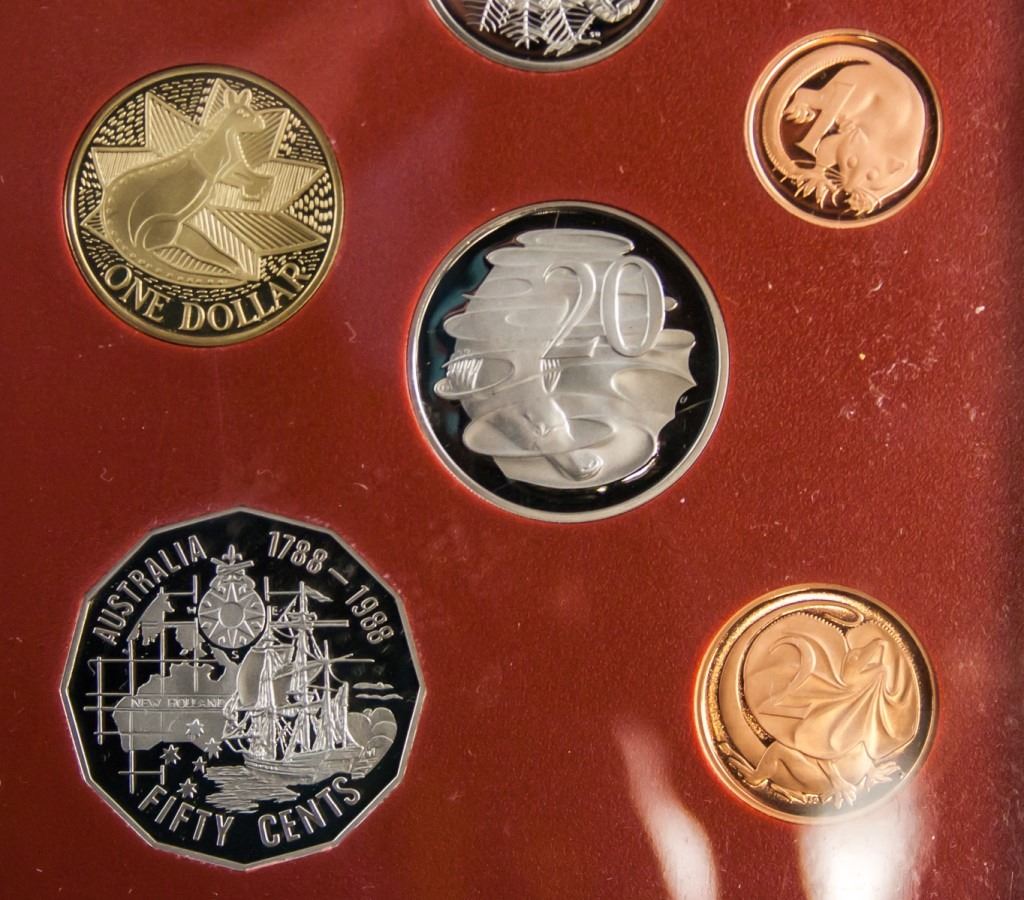 Australian coin set. From 1988. From Royal Australian Mint Canberra. 17 x 12 cm. 286 grams.