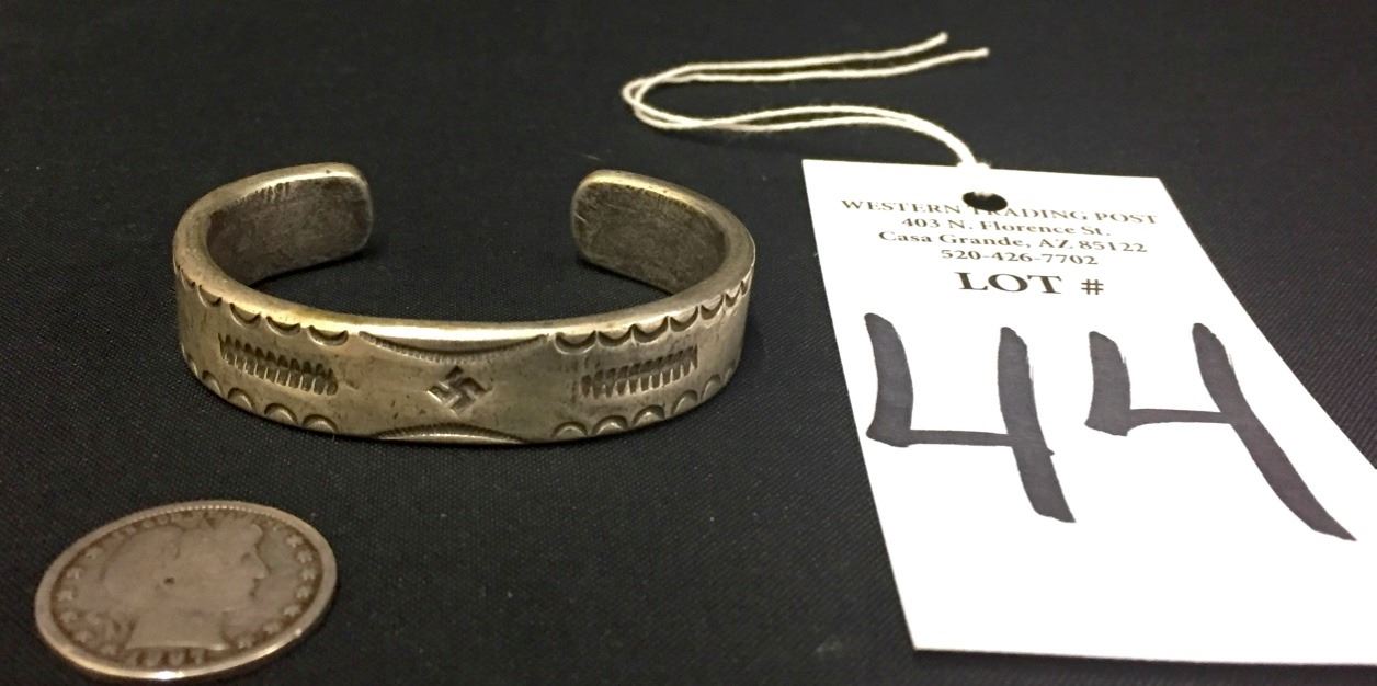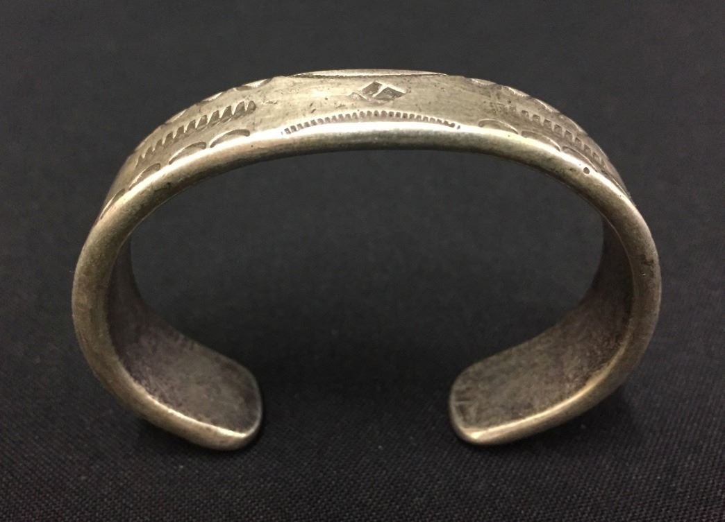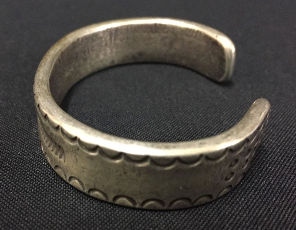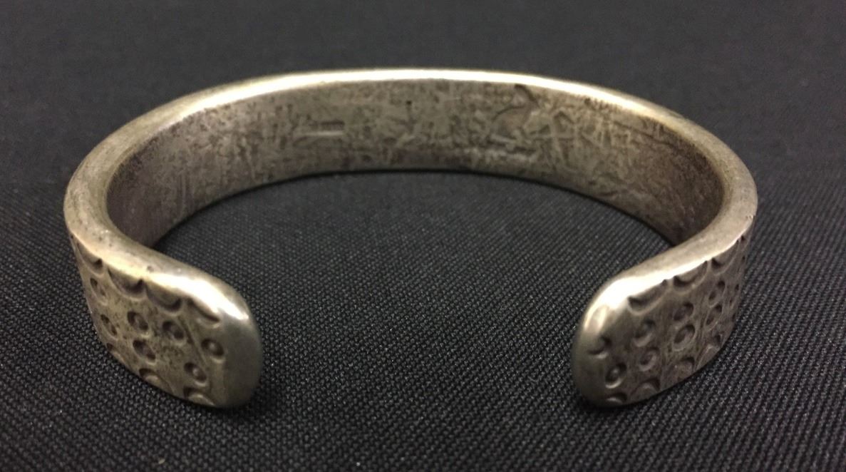 Maker: Red Rabbit Trading Co., Tucson, AZ. Approx. Age: Contemporary. Size: Measures 5.25” inside plus there is a 1”opening. It’s .5” wide across the face and weighs 61g. Condition: Good. Additional Info: Old school, retro style. Marked as coin silver. Please look closely at the pictures - they are an important part of our description. Shipping: There will be a $5 handling / packaging fee for shipping this lot. The actual cost of postage will be added on top of that.