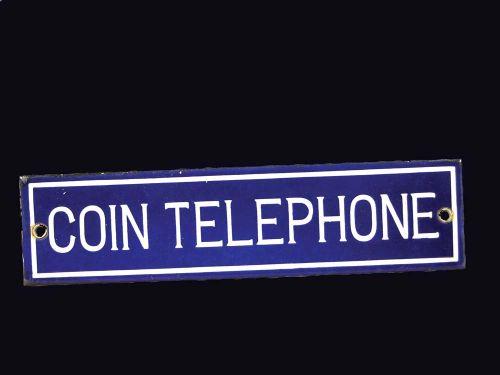 Coin Telephone Porcelain Sign. Very good condition. 10 X 2 3/4 inches.