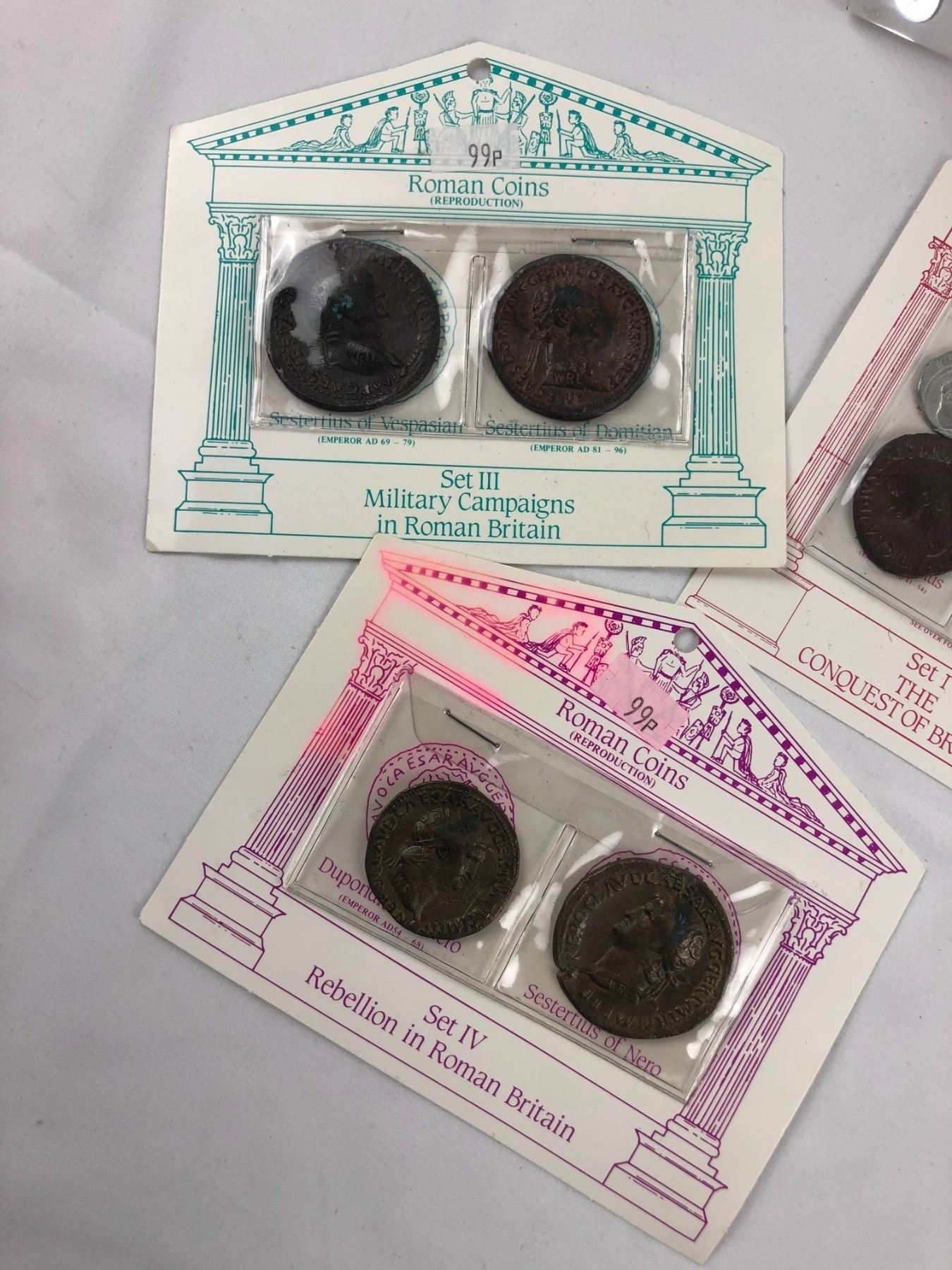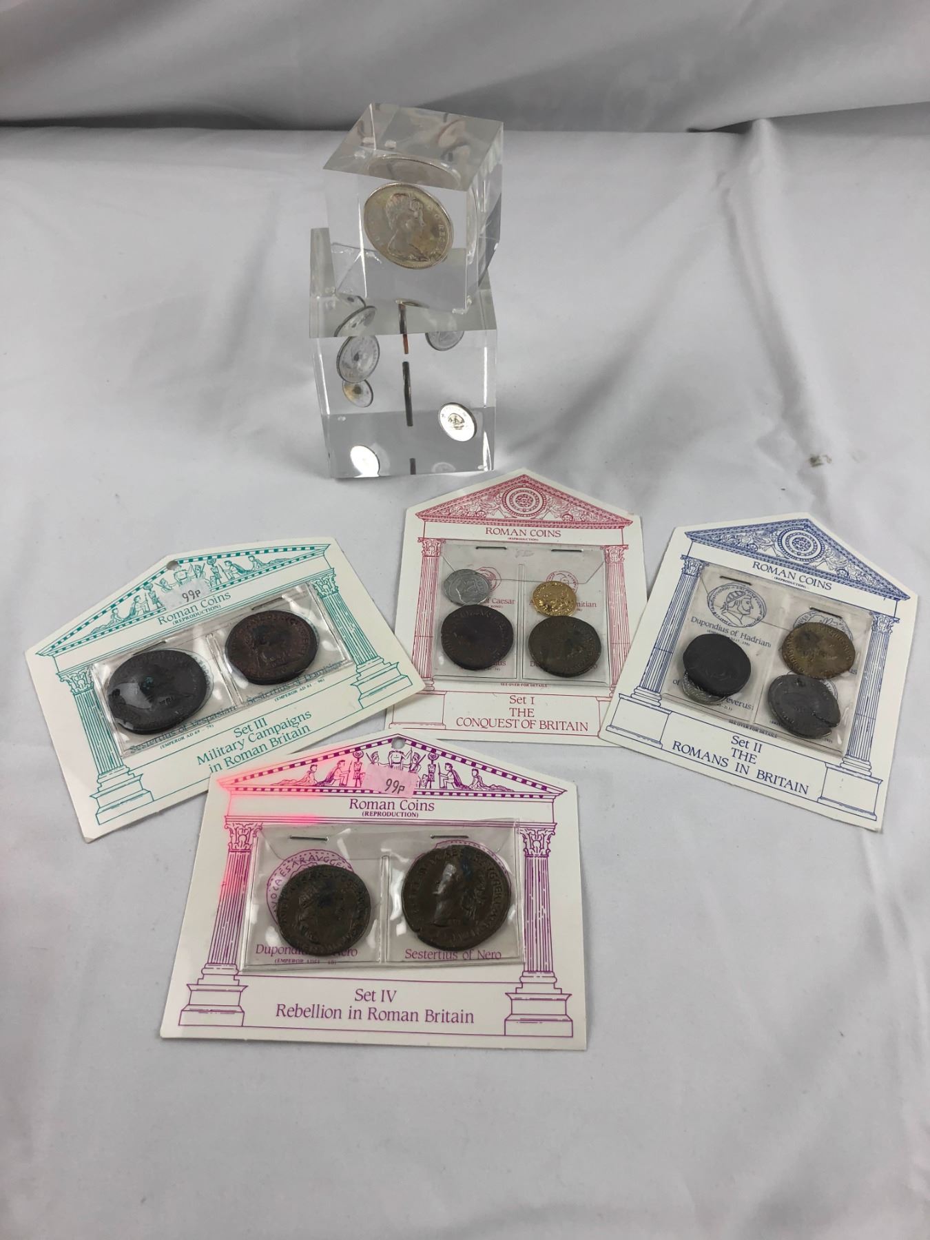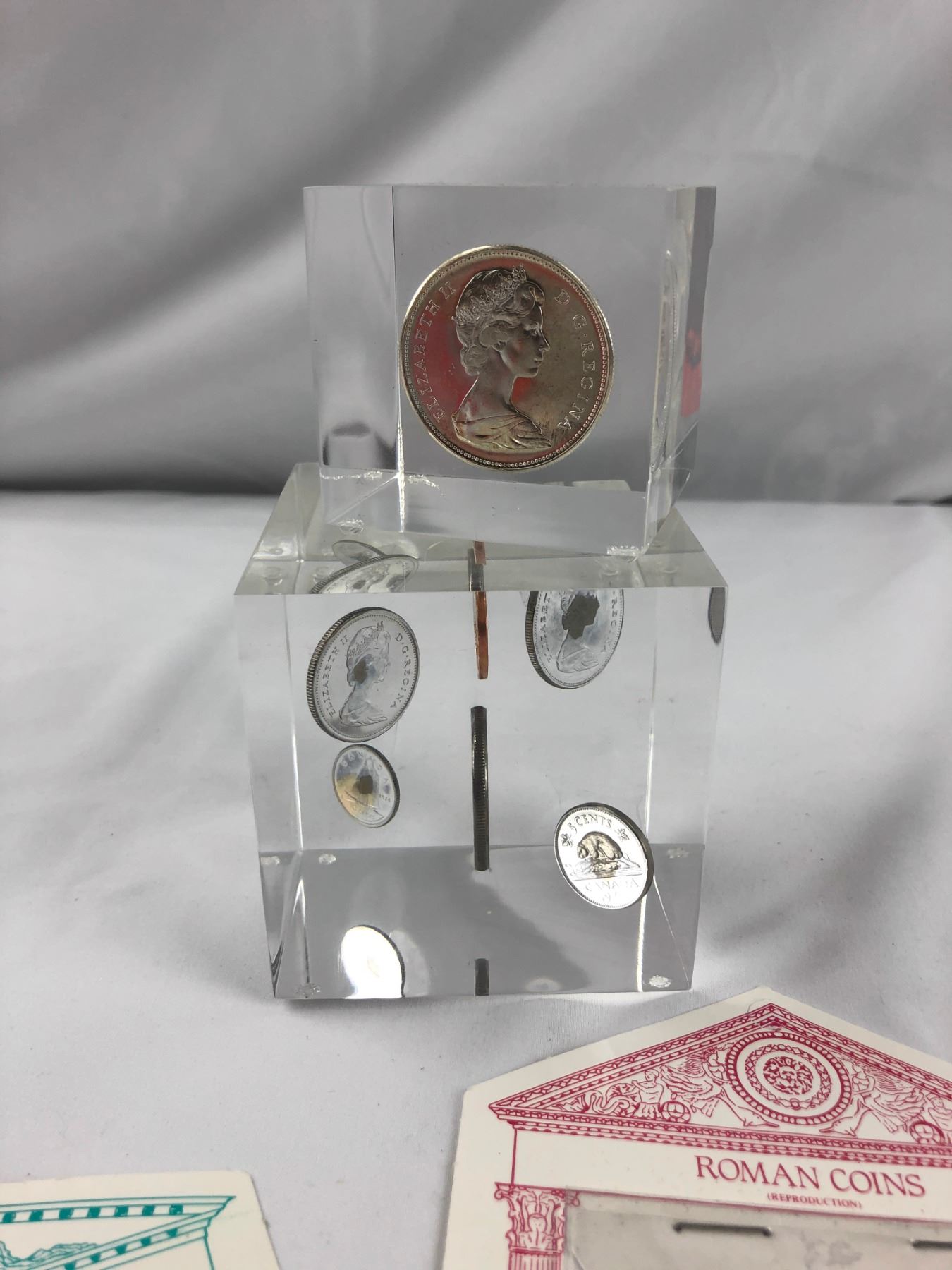 1 - 3" x 3" and 1 - 1.5" x 3". 3 Roman coins in each
