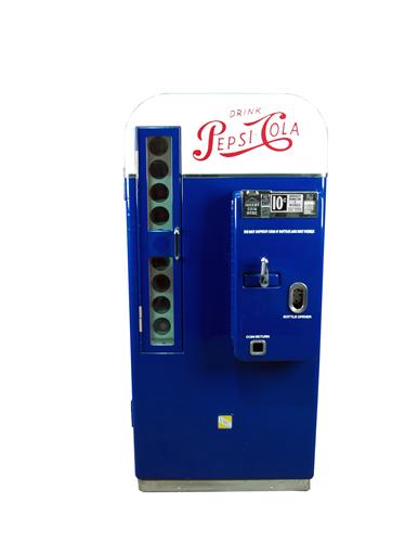 Coin-op "Pepsi-Cola" Soda machine  Vendo Model 81  2 tone blue  1957  will take all size bottles,  beer etc..the 2-tone embossed model is more rare than Single Color Pepsi or Coca-Cola