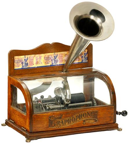 "The Graphophone Mod. BS", um 1898 Seltener Münz-Phonograph der "Columbia/American Phonograph Company, New York". - Literatur: "When Music Was Magic", J.P. Kurdyla, 1987, S. 47. - Und: "Grammphone", D. Marty, 1981, S. 27. - In exzellentem, funktionierendem Originalzustand. - Sehr gesuchtes Sammlungsstück und Museumsexponat.