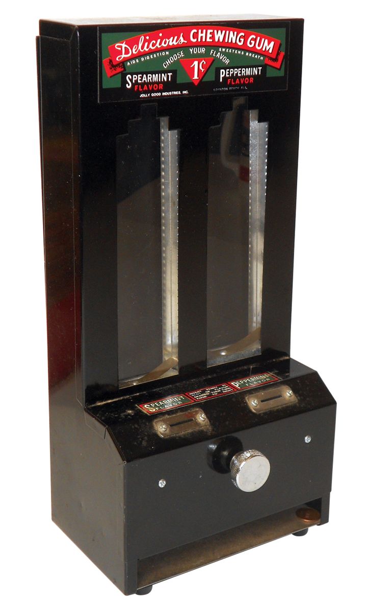 Coin-operated gum vendor, mfgd by Jolly Good Ind.-Boynton Beach, FL, 1 Cent 2-column vendor in Exc c