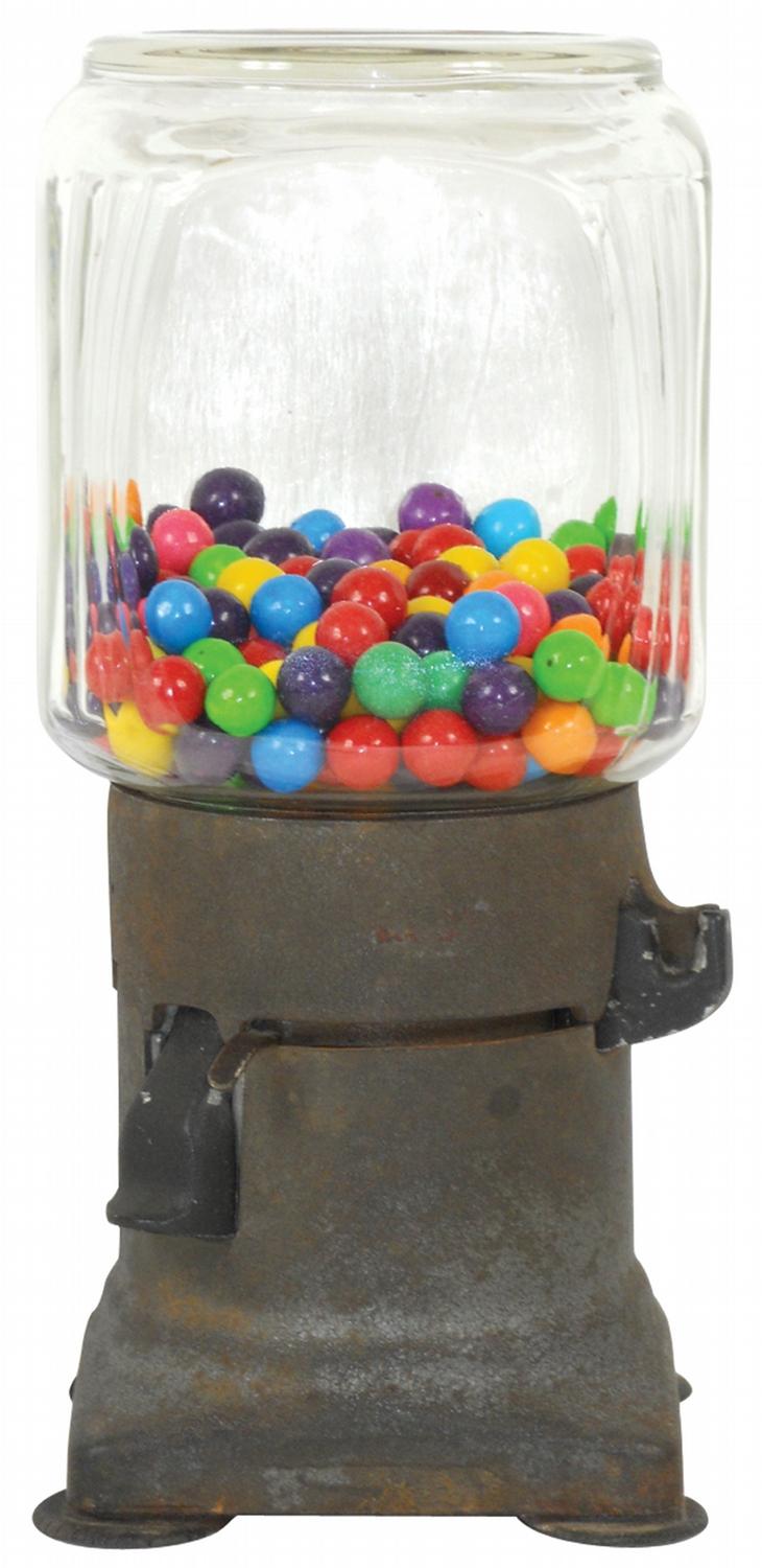 Coin-operated machine, Vendex 520 gumball vendor, 1 Cent, cast iron w/orig glass jar, operator would bring ready filled jars & switch the full jar for the empty, c.1935, Exc orig working cond, 12"H.