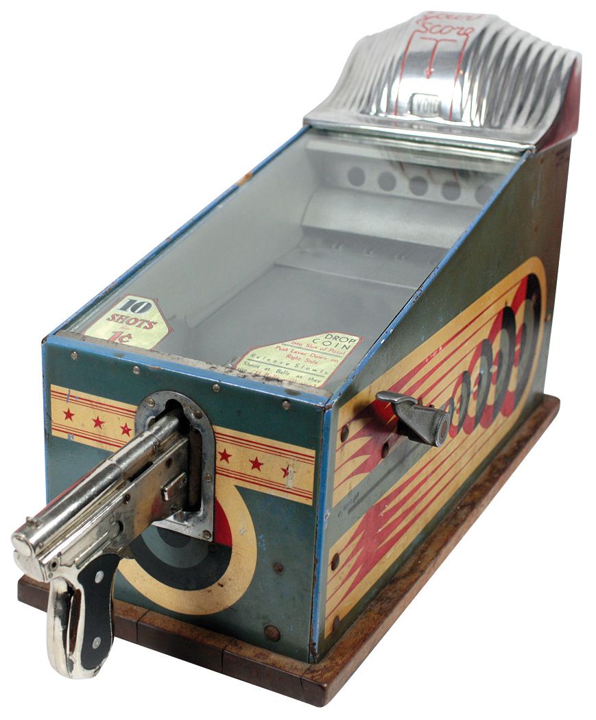Coin-operated target game, mfgd by A.B.T.-Chicago, 1 Cent, VG cond, no key, 16"H x 10"W x 27"L.