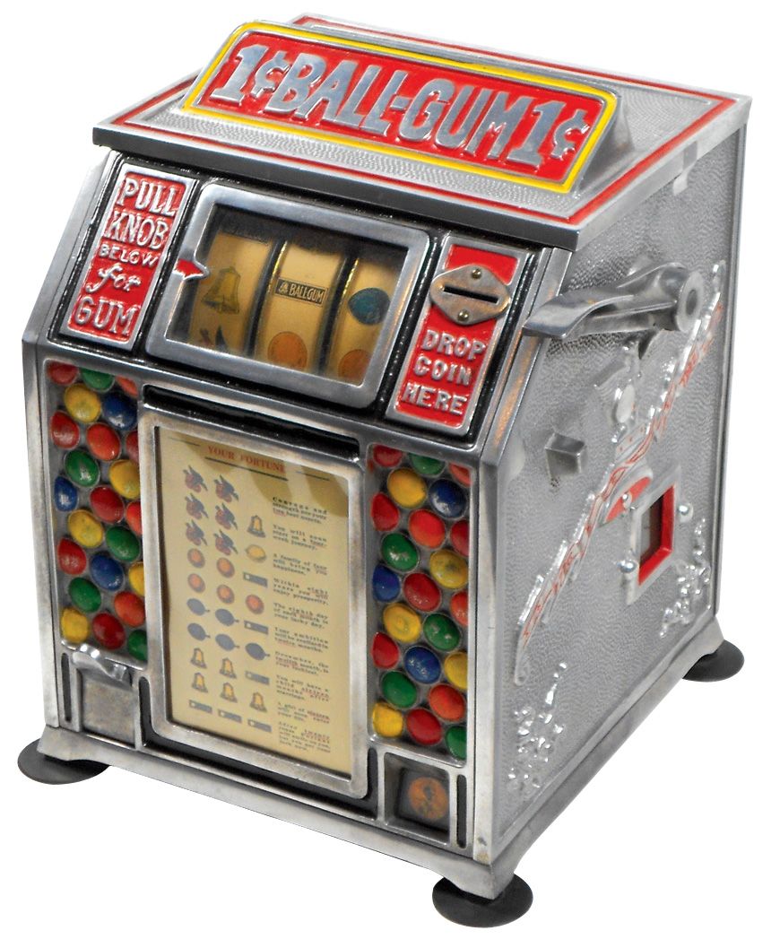 Coin-operated trade stimulator, Pace Dandy Vendor, 1 Cent Ball Gum, Exc+ working cond w/key, 11.5"H