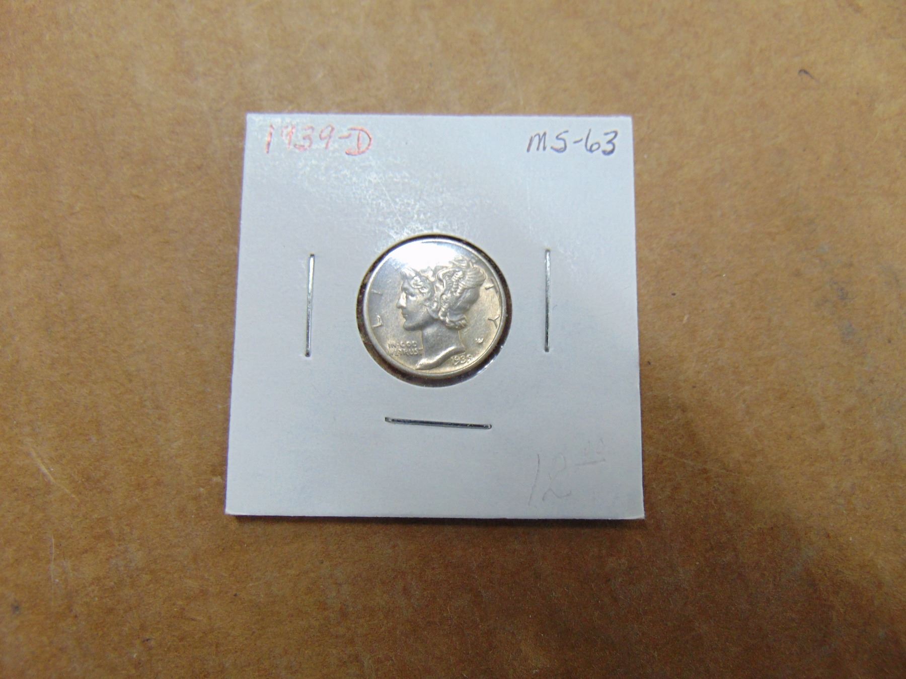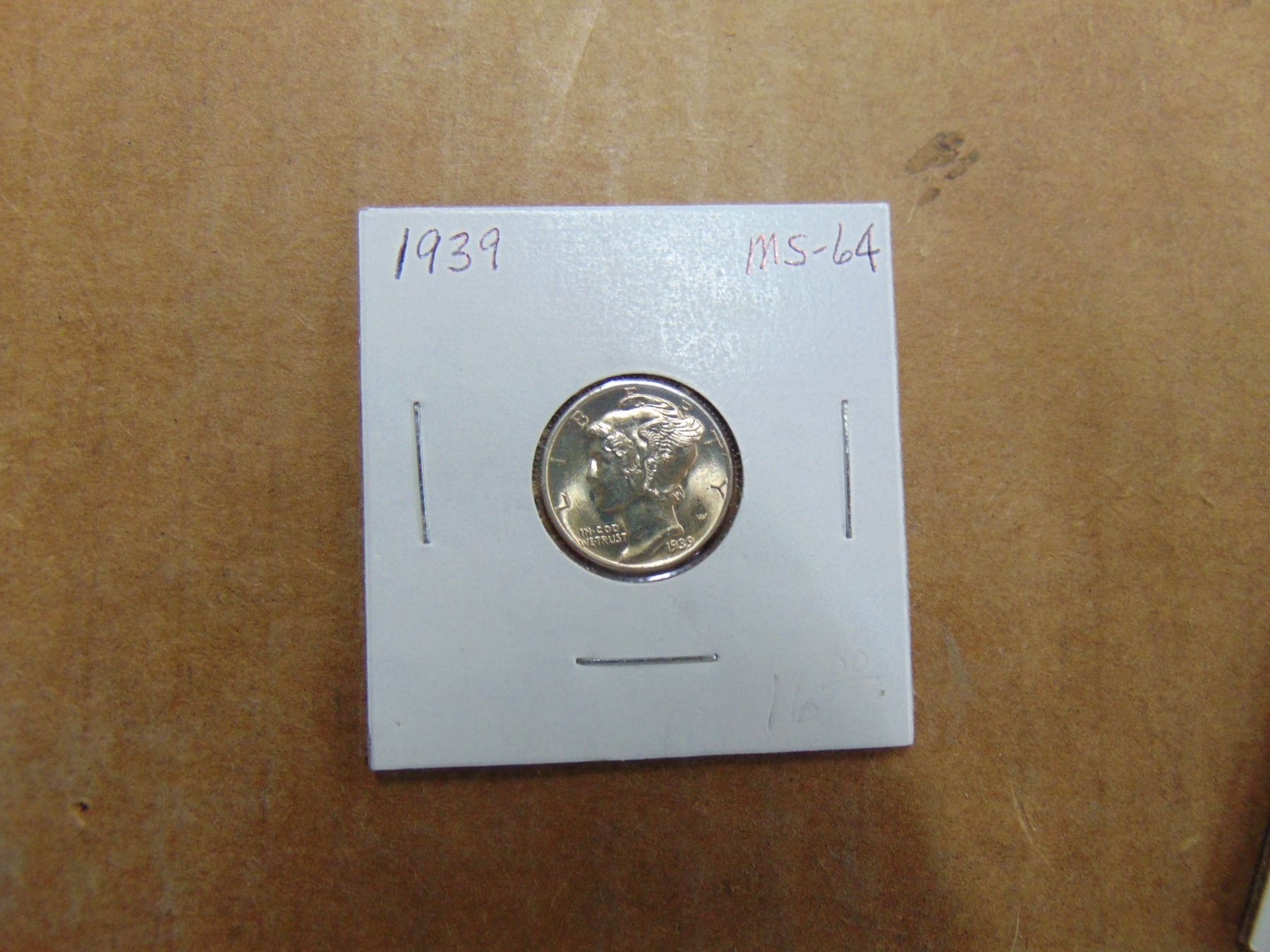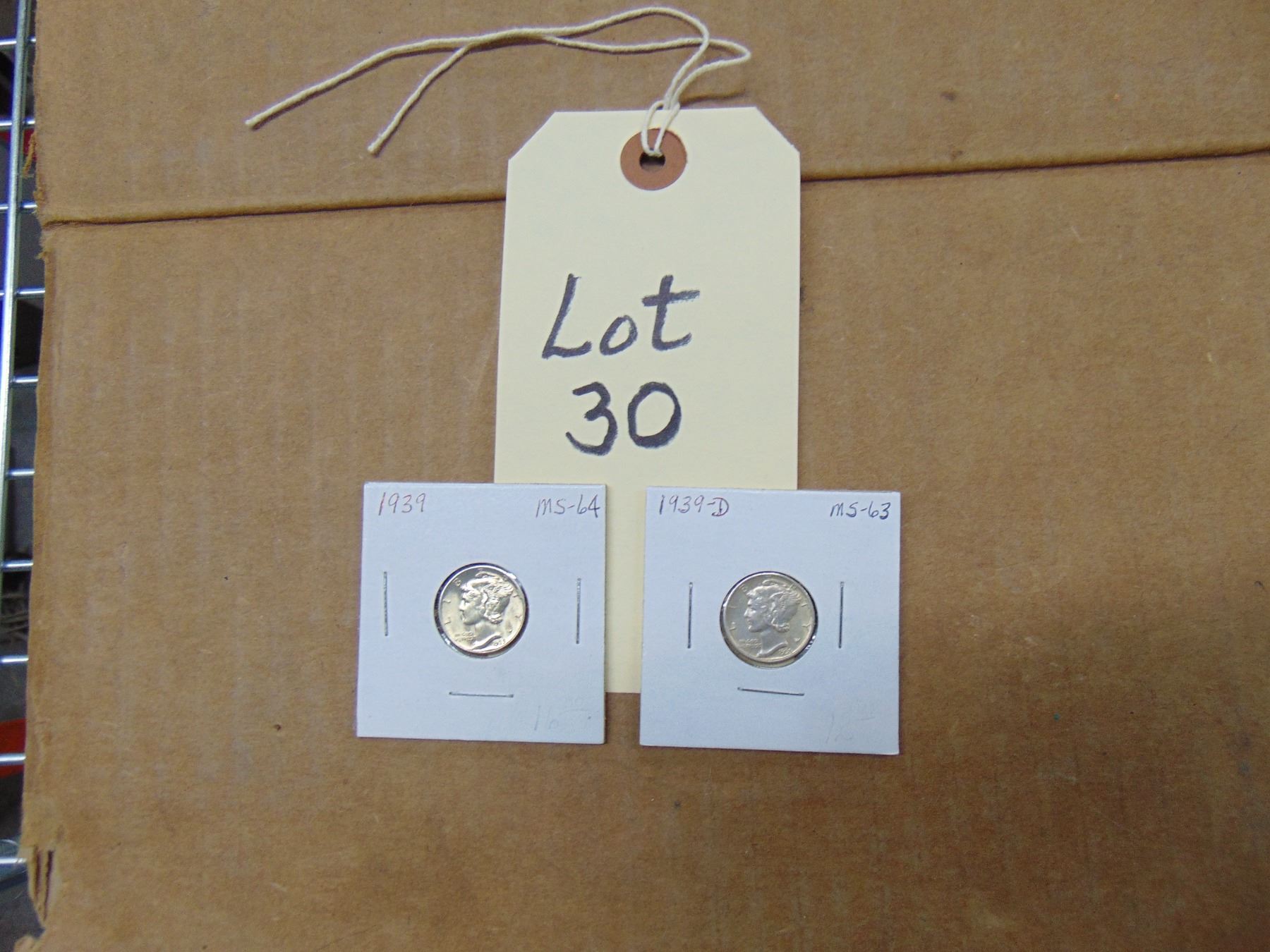 Two Mercury Dimes; 1939 is MS-64; 1939-D is MS-63