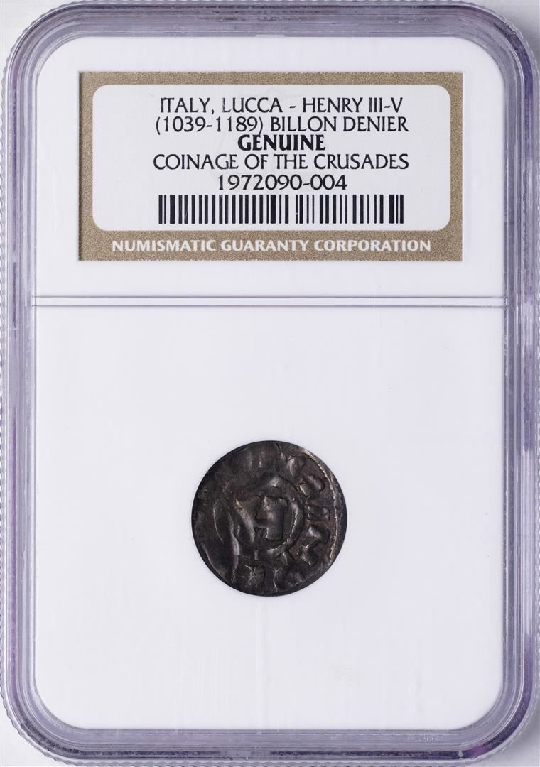One Coinage of the Crusades 1139-1339 Italy Genoa Conrad III Billion Denier NGC Genuine. NGC Certified.