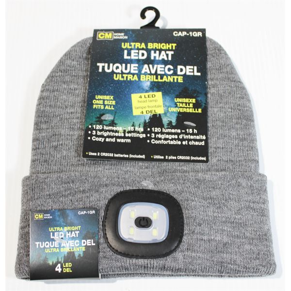 GREY ULTRA BRIGHT LED TUQUE, 120 LUMEN