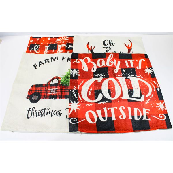 4 ASSORT. HOLIDAY THEMED PILLOW SHELLS