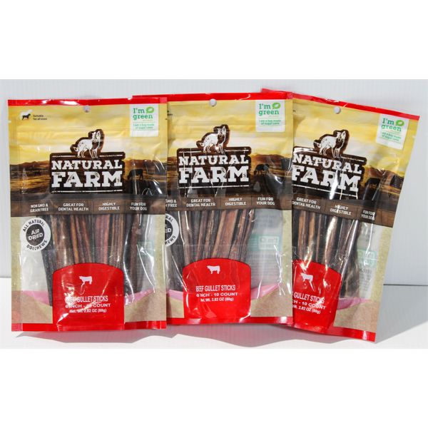 3 PK NATURAL FARM DOG BEEF GULLET DOG STICK CHEWS