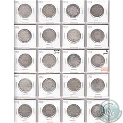 Lot of 20x Canada 50-cent Dated 1902-1929 in Plastic 20-Pocket Page. 20pcs
