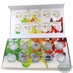 2014 $10 O Canada Complete 10-Coin Fine Silver Set with Deluxe Box (Coloured coin capsule is lightly scratched). TAX Exempt