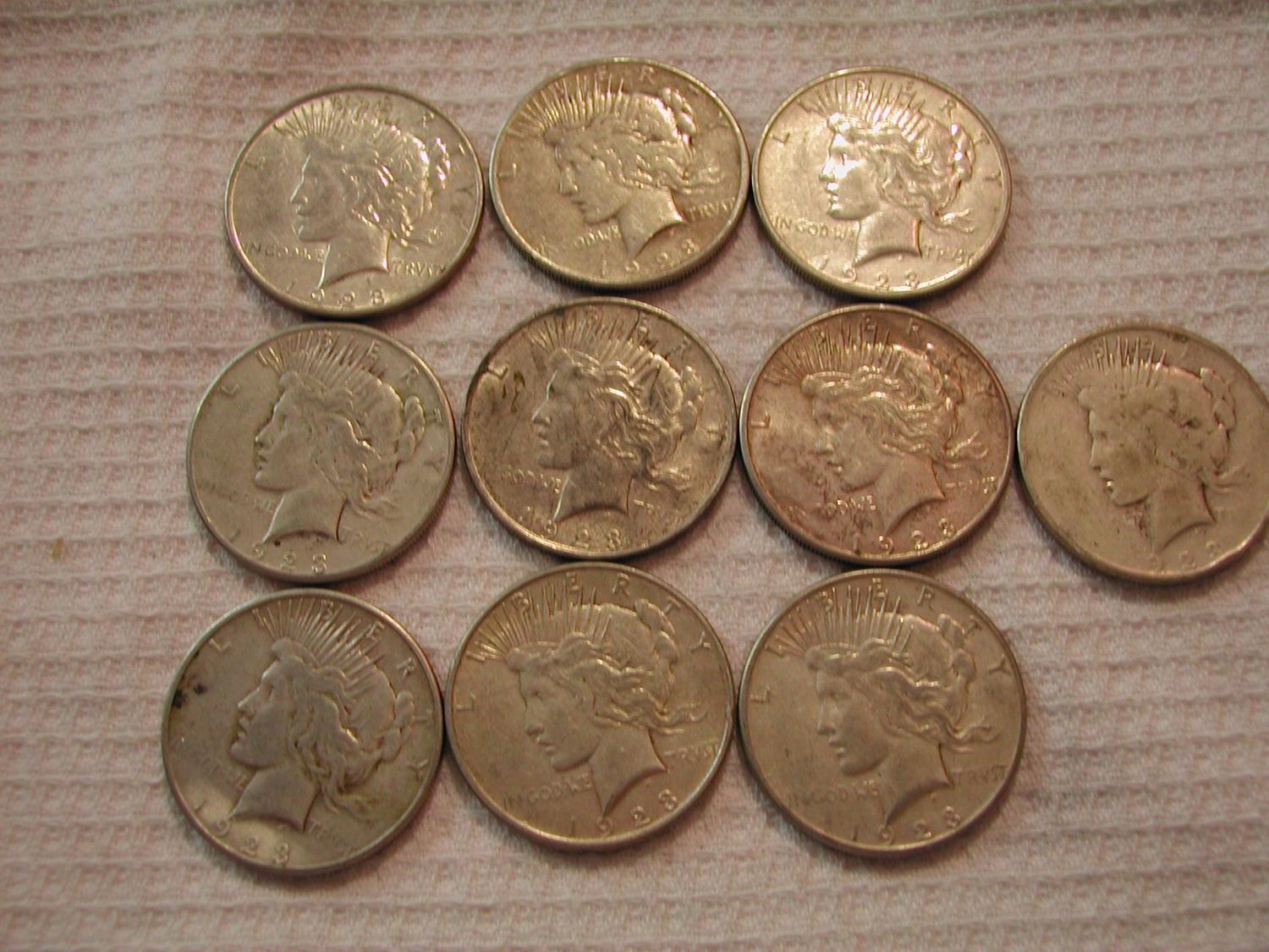 10 - 1923 Peace Silver Dollars - One Money