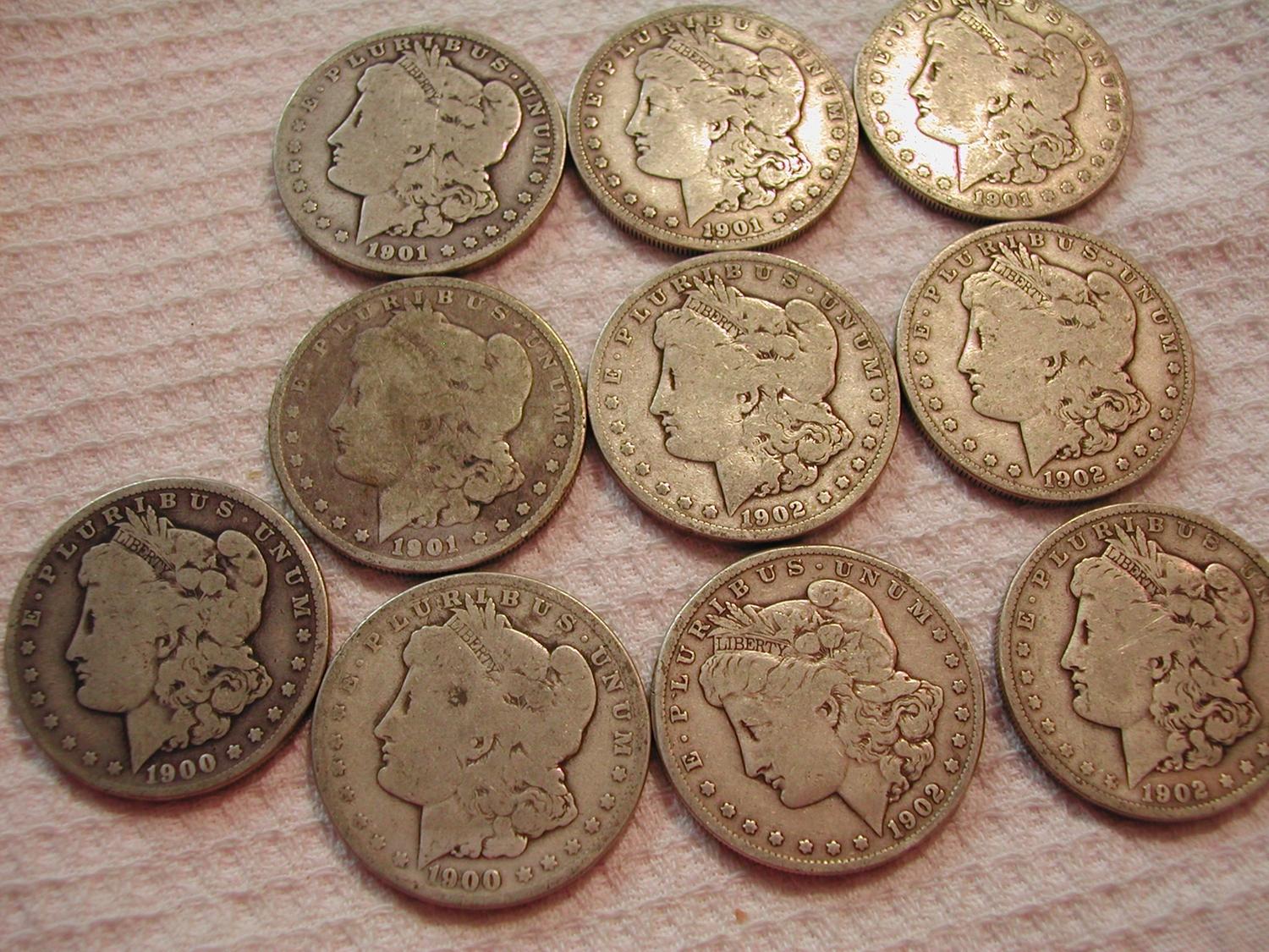 10 Morgan Silver Dollars 1900-O (x2), 1901-O (x2), 1901-S (x2), 1902, 1902-O (x3) - One Money