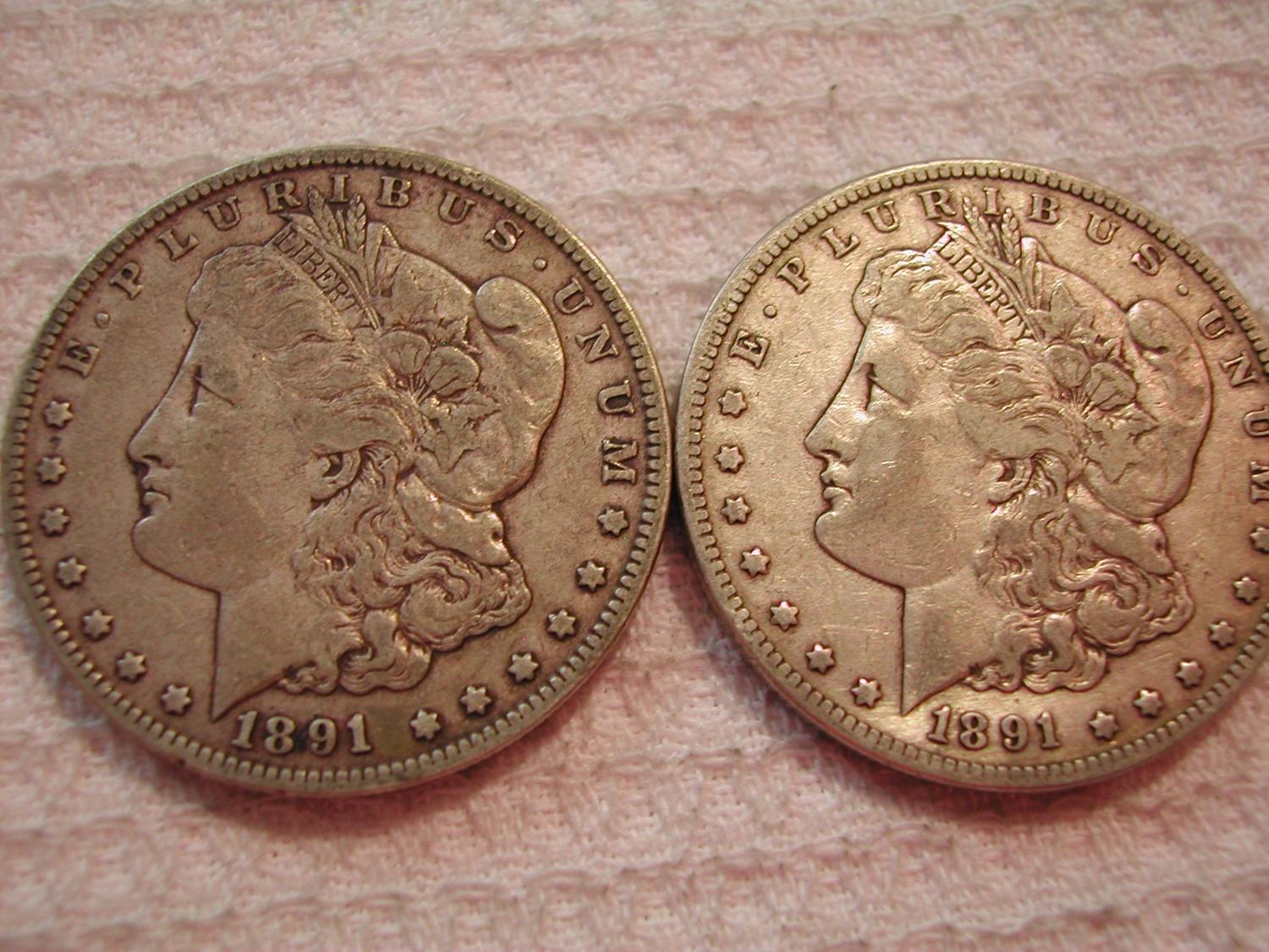 1891 (x2) Carson City Morgan Silver Dollars, one money