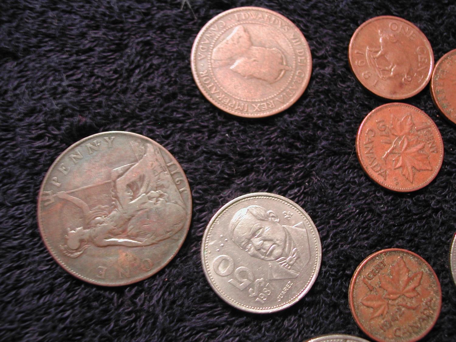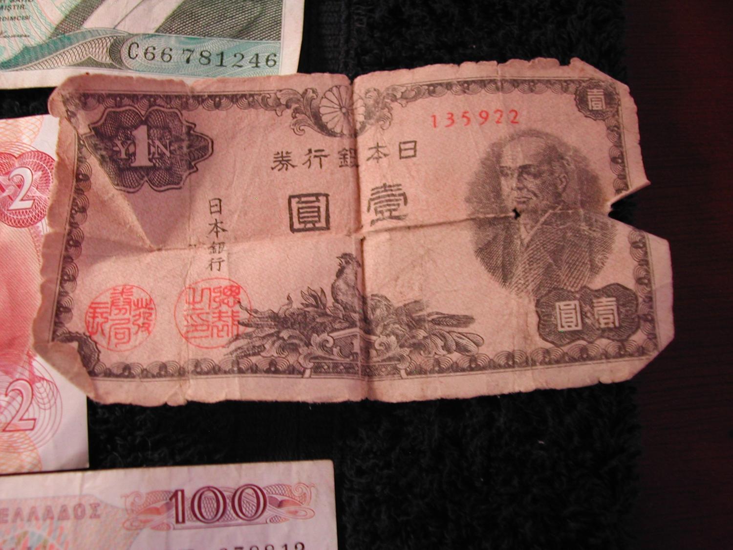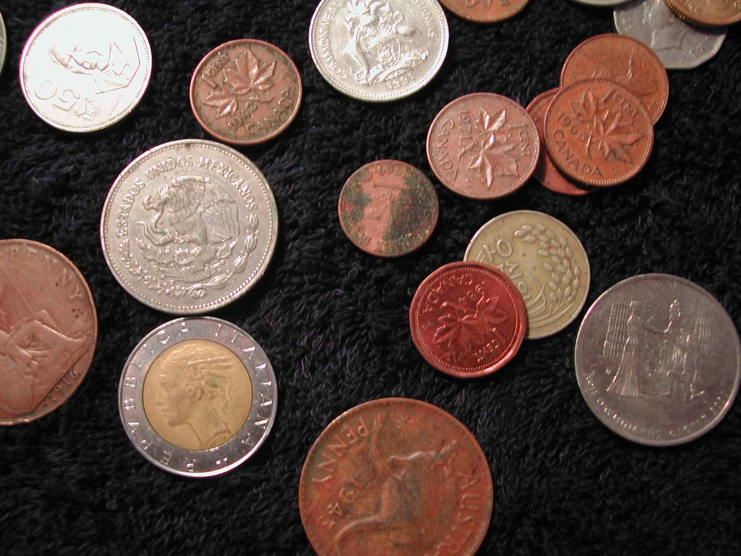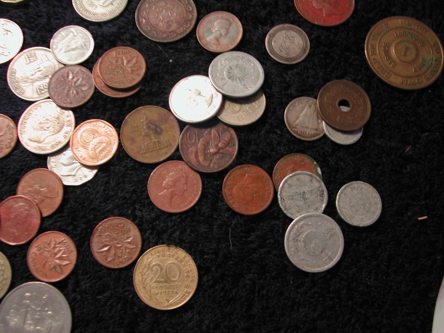 53,000 Turkish Lira, $2 Canadian, 1 Yen, 100 Greek Drachma, 1 Saudi Riyal, coins from Mexico, Canada, China, Italy, Bahamas, Great Britain and moredating from 1907 - 1989