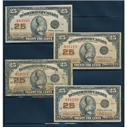 DOMINION OF CANADA 1900 25 Cents. Lot of 4 Banknotes, DC-15. graded: VG-VF