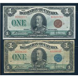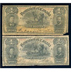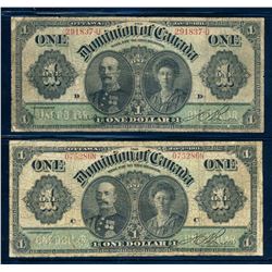 DOMINION OF CANADA 1870 25 Cents Large B & -1c, DC-1b. Graded: VG & G. Description: 2 low grade examples of the first banknotes of Canada