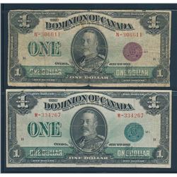 DOMINION OF CANADA 1923 25 Cents McCavour-Saunders. Lot of 6 notes, DC-24c. VG-VF Description: S/N 485178 Check letter E, 112 x 61 FP-5 BP-4 VG, S/N