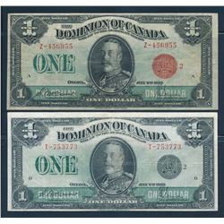 DOMINION OF CANADA 1923 25 Cents McCavour-Saunders. Lot of 5 notes, DC-24c. VG-VF Description: S/N 579158 Check letter A 111 x 63 mm. FP-5 BP-4 VF,