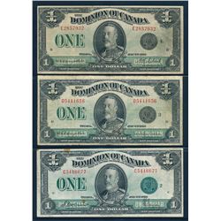 DOMINION OF CANADA 1923 25 Cents. Lot of 3 Banknotes, DC-24a. Authorized in Fine-VF