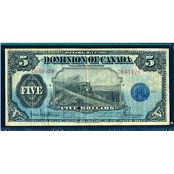 DOMINION OF CANADA 1912 $5.00 DC-21b Very Good + Description: S/N225675B