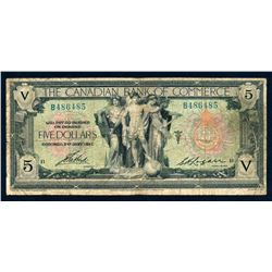 CANADIAN BANK OF COMMERCE 1935 $5.00, 75-18-02, Aird-Logan. Very Fine