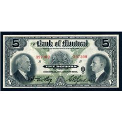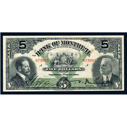 BANK OF MONTREAL 1914 $5.00, 505-54-04 Extra Fine